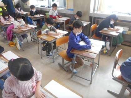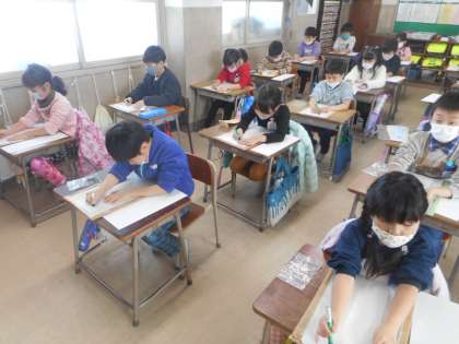 「練習の力を発揮できたよ」「練習の方が上手だったのになあ」など思いはそれぞれですが、書き終えた子どもたちは、それぞれに感想を伝え合っていました。