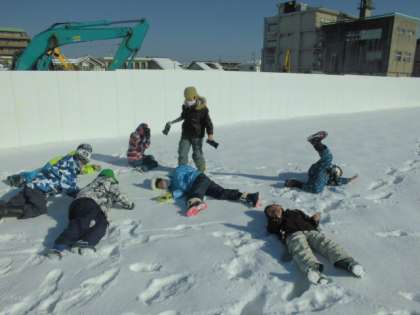 「歩けるよ」「サラサラだ」「ごぼった!」「寝転んだら跡ができた」「冷たくて気持ちいい」「氷を見付けた」などの声が聞かれ、35年ぶりの大雪を体と心で楽しみました。