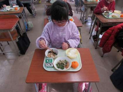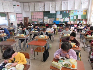 今週は、学校給食週間です。給食で、本にちなんだ献立を味わうことができます。今日は、「おでんざむらい」でした。「ぼく、ちくわが大好きなんだよね」「こんにゃく、入っているかな」など、午前中から給食を楽しみにする子どもたちの姿が見られました。
