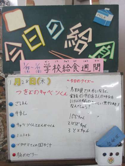 今日の給食 1/28(木) 「つきよのキャベツくん」