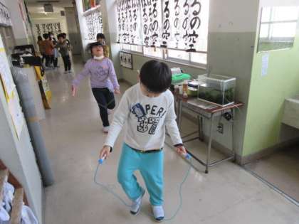 朝の時間や休憩時間等に縄跳びに取り組む子どもたちです。