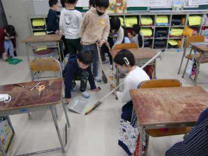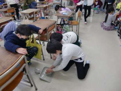 図画工作の学習の後は (2年生) 公開日 2021/01/29 更新日 2021/01/29 2年生 いつもながら、図画工作の時間に出た紙くずなどもみんなで協力しあって後始末をしました。なんでも一生懸命のみなさんです。