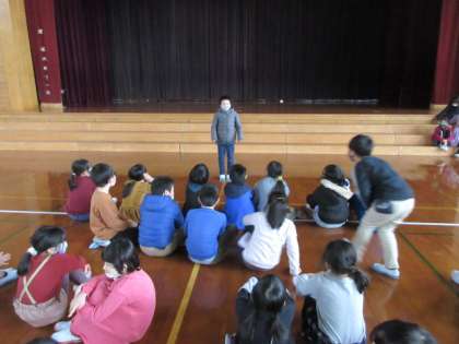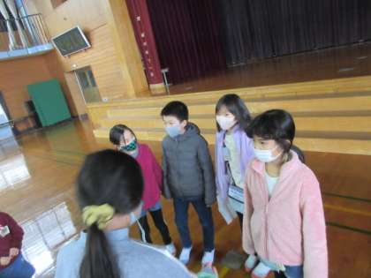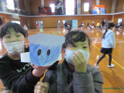 イベント係が企画した節分集会を行いました。鬼のお面をかぶった人が鬼となって、鬼ごっこをしました。折り紙で作った豆を投げると、鬼は10秒止まらないといけないという節分の日の特別ルールもあり、いつもの鬼ごっこよりも、楽しい時間を過ごしました。