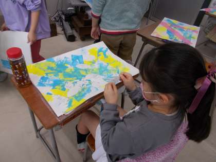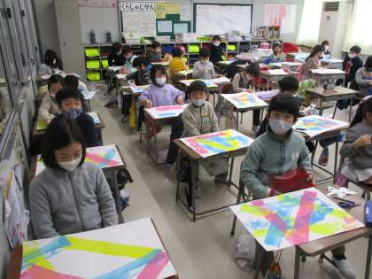 シールを貼っています(2年生) 公開日 2021/02/04 更新日 2021/02/04 2年生 今日は、薄い絵の具を塗ったり、薄い絵の具が乾いたところにシールを貼りました。どんな作品ができるのか、楽しみが増えてきました。