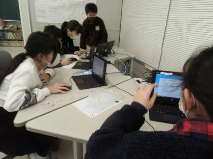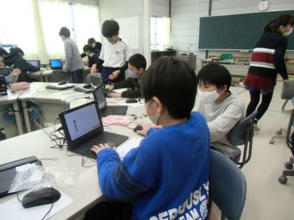音楽科の学習で、曲を作っています。〇〇な時に聴きたくなる曲を想像しながら、好きな楽器の音を選んだり、音符の長さを工夫したりして、音をつなげています。「眠たくなる時に聴きたくなる曲」や、「散歩をする時に聴きたくなる曲」など、それぞれの子どもたちが、自由に自分のイメージに合った曲を作っています。さて、どんな曲に仕上がるでしょうか。