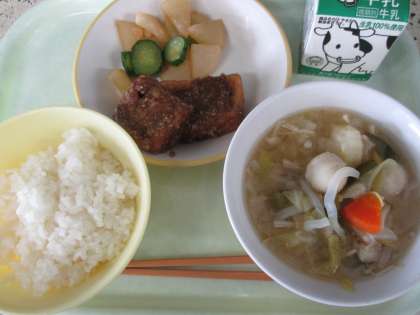 今日の「揚げ出し豆腐」には、ごまだれがかかっていました。ごまの原産地は、アフリカです。ごまには、不足しやすい栄養素のカルシウム、鉄、亜鉛などが多く含まれています。