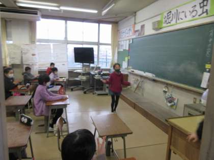 今日から2日間、3学期学習参観です。いつも通りの授業を行いますが、一年間の子どもたちのがんばりや成長を紹介するために、授業の始めに個人発表を行います。「お母さんに聞かれないように部屋でこっそり練習してきた」や「ぬいぐるみを相手に練習してきたよ」など、今日のために、家でも練習を頑張る子どもたちでした。