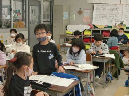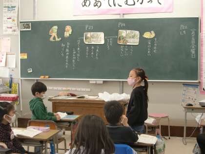 国語科の学習 (2年生) 公開日 2021/02/19 更新日 2021/02/19 2年生 「声に出して読もう『お手紙』」の学習に取り組みました。かえる君からお願いされたお手紙を4日間かけてがまがえる君に届けたかたつむり君の姿や約束をはたすことができた姿からそれぞれの思いを伝え合いました。諦めない、一生懸命に頑張ることのすばらしさに気がつくことができました。