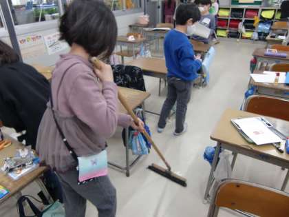 生活科での書き込み作業では、紙くずなどが落ちてしまいました。そこで、学習の終わりには自ら掃除に取り組む素敵な姿がたくさん見受けられました。なんでも一生懸命のみなさんです。