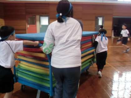 力を合わせて、マットのかたづけもしっかりできました。