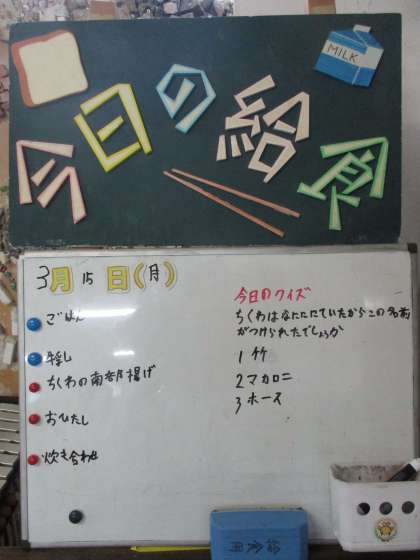 今日のおひたしには「チンゲンサイ(青梗菜)」が使用されていました。「チンゲンサイ」は、中国野菜の中でも身近な野菜の1つです。日本には、1970年代に入ってきました。学校給食でもよく使われている野菜の1つです。