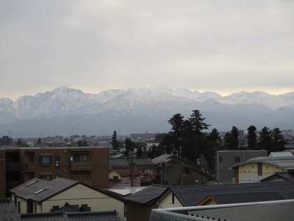 今は曇り空ですが、立山連峰がはっきりと見えます。