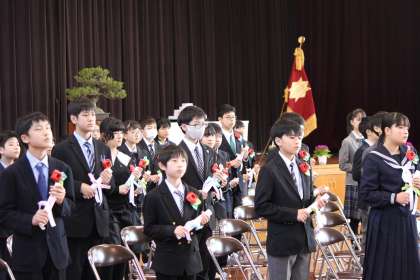 令和2年度 卒業証書授与式 公開日 2021/03/19 更新日 2021/03/19 学校行事 3月19日(金)令和2年度堀川小学校卒業証書授与式を行いました。卒業生78名が立派に堀川小学校を巣立って行きました。一人一人の思いが詰まった、美しい卒業式になりました。