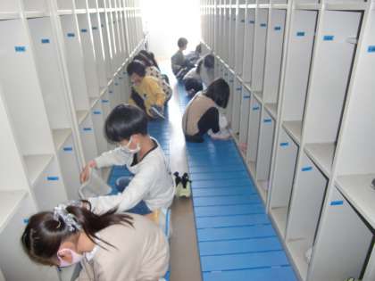 下校前の自分の下足ロッカーの掃除をしました。みんな、1年間使わせて頂いた感謝の気持ちを込めて、掃除をしました。
