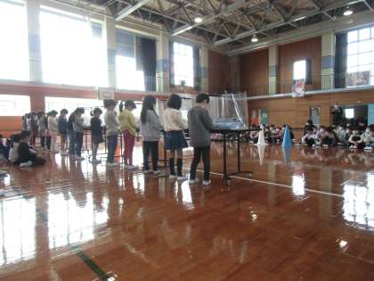 1年生入学おめでとう集会(2年生) 公開日 2021/04/09 更新日 2021/04/09 2年生 先日、1年生の入学をお祝いする集会を開きました。2年生の子どもたちは、1年間の堀川小学校でのくらしの中で、できるようになったことを発表しました。 入学した時から1年が経ったのだと実感しました。 子どもたちは、「よくできた」「もっとできたと思う」「1年生さんがちゃんと見てくれていた」と、それぞれの振り返りがありました。 2年生として、立派にスタートを切っている子どもたちです。