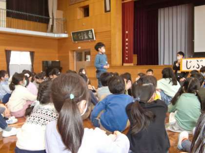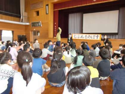 今日は2年生で、換気等に気を付けながら、学年開きの集会を行いました。2年生の学年目標は「じぶんをのばす」です。学年目標を受けて、「大きくなりたい」「自分のできることをもっと伸ばしたい」「1年生で『できることいっぱい』になったから、2年生はそこからもっと伸ばす」など、自分の思いを話したり、真剣に聞いたりする子どもたちの姿がありました。