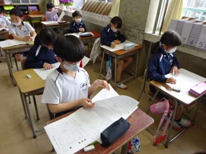 初めての学力調査(3年生) 公開日 2021/04/13 更新日 2021/04/13 3年生 学力調査の国語を実施しました。 今まで経験したことのない問題量に子どもたちは、最初は戸惑っていましたが、時間いっぱいまで粘り強く取り組んでいました。 明日は、算数です。力を出し切ってください。