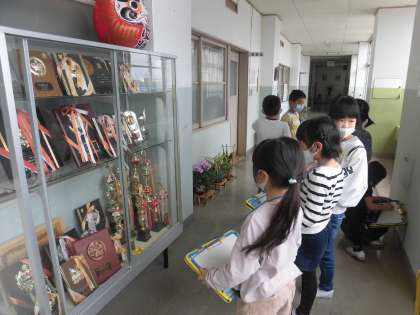 初めて校長室に入った子どもたちは興奮気味に「校長室にソファーがあったよ」と話していました。また、廊下に不思議な取っ手を見付けた子どもたちは、「これは何かな?」と興味津々。昔のゴミ箱だと知ると、「びっくりした!」と驚いていました。堀川小学校についてさらに詳しくなった子どもたちです。