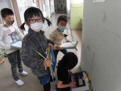 2年4組には、4月から堀川小学校に通うことになった仲間がいます。まだ堀川小学校の中を詳しく知らない仲間のため、今まで気付かなかった堀川小学校の魅力に気付くために、生活科の学習の時間に「お気に入りを見つけよう」という学習課題のもと、学校探検を行いました。
