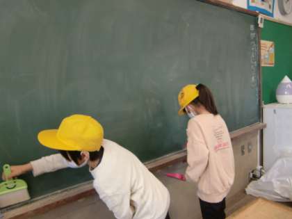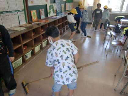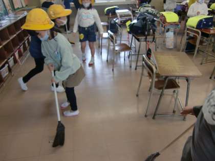 下校前、自ら教室の掃除に取り組む姿が見られます。きれいな教室にしようとみんなで協力するみなさんです。