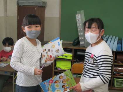 今日の外国語活動では、英語を使って相手の名前を尋ねたり、自分の名前を答えたりする活動に取り組みました。一人10人を目標に、たくさんの仲間に「Hello!What's your name?」や「I'm 〇〇」と話しかけました。