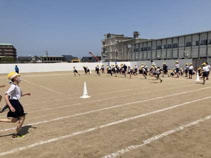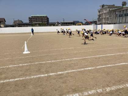 青空の下、駆け抜けました。スタートを意識して練習しています。
