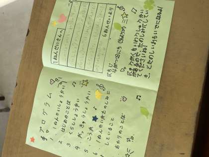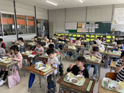 今日は体育で思い切り走って、給食をもりもり食べる子どもたちの姿が見られました。また、6年生から入学おめでとう集会のプログラムをもらい、「お兄さん、お姉さんに会えないけれど嬉しいね」と言いながら、明日の集会を楽しみにしている様子も伺えました。