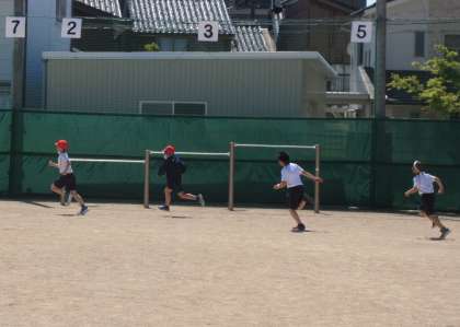体育科の学習では、短距離走の練習をしています。晴天の下で仲間と競い合いながら、練習に励みました。30日(金)1時間目には、初めての100m走記録会を予定しています。できることを精いっぱいやり、自分の記録に挑戦してほしいと思います。