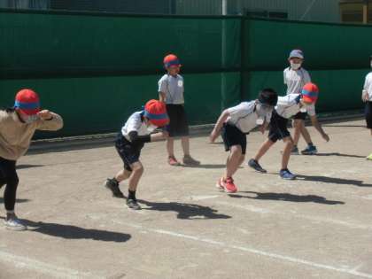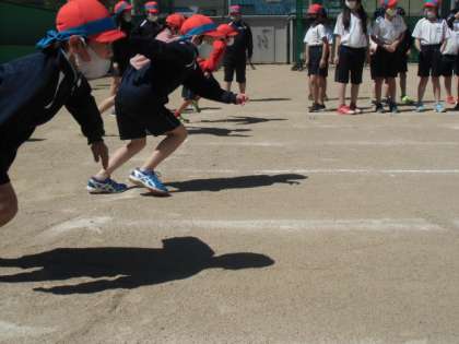 1組2組合同で、スタートダッシュの練習をしました。子どもたちは、仲間と走ることを楽しみながら練習に取り組んでいました。
