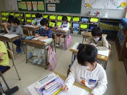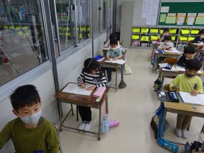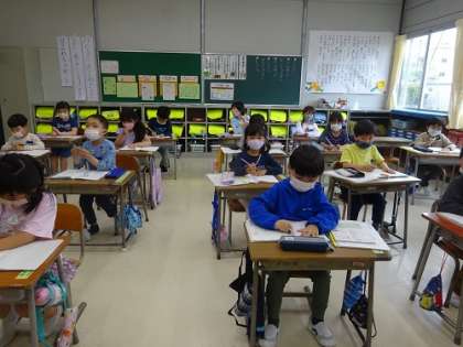 5月に入ってから、1年生は自分で連絡帳を書いています。気持ちを落ち着けて、背筋を伸ばし、正しく鉛筆を持って、一文字一文字丁寧に書いています。また一つできることが増えたことを喜び、楽しんで連絡帳を書いています。