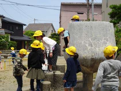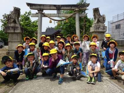 生活科「たんけん はっけん 堀川のまち」で、町探検に出かけていきました。子どもたちは、自分の住む町にはいろいろな素敵な場所があることに気付き、もっと校区の中にある場所やもの、人に出会いたいと感じ始めているようです。今日は、「ありがとうの家」と、神明社、堀川町公園に歩いて探検に行きました。様々なものに心をはたらかせながら、自分の町のよさを感じることができました。