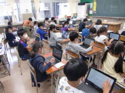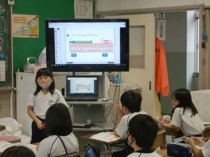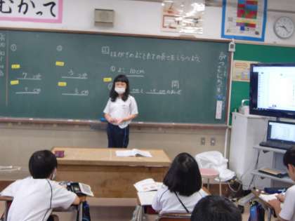 算数科の学習にて (2年生) 公開日 2021/05/17 更新日 2021/05/17 2年生 算数科の学習では「長さをはかってあらわそう」の単元に取り組んでいます。 今日はcmやmmは長さをは現す単位だと知りました。より単位ことを知りたくなり、クロムブックを使って調べました。単位があるから数が数えたり、計ったりすることができることを知りなかまに伝えることができました。