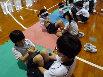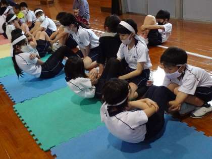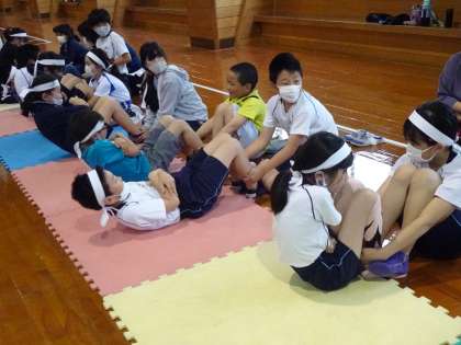 測定時間は30秒!上体起こしを頑張りました(4年生) 公開日 2021/05/17 更新日 2021/05/17 4年生 体育科の時間では、体育館で上体起こしを測定しました。 マットを引き、その上で30秒、一生懸命上体起こしを行います。 「前より5回も伸びた!」 「先生、もう1回測らせて!」 仲間と競い合いながら楽しく測定しました。
