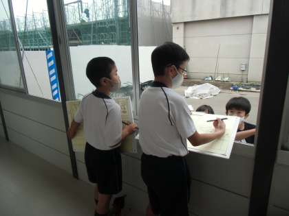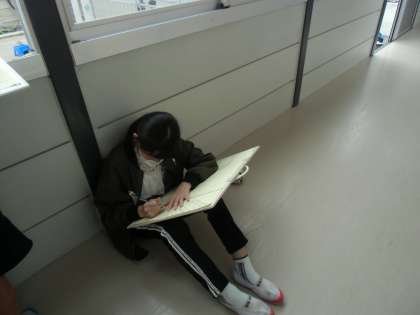 図画工作科では「わたしの大切な風景」と題し、これまで5年間くらしてきた堀川小学校の中で、思いの残っている場所や風景を選び、描いています。クロームブックで写真を撮って、細かいところまでこだわって描いたり、実際にその場所に行って自分の目でよく見ながら思いのこもった作品にしようしたりするなど、真剣に取り組んでいる6年生です。