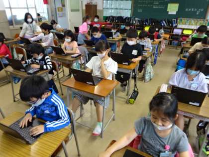タイピングに挑戦(3年生) 公開日 2021/05/19 更新日 2021/05/19 3年生 3年生は、ローマ字の練習にも取り組んでいますが、タイピングにも挑戦しています。 仲間と得点を競いながら楽しく学習しています。