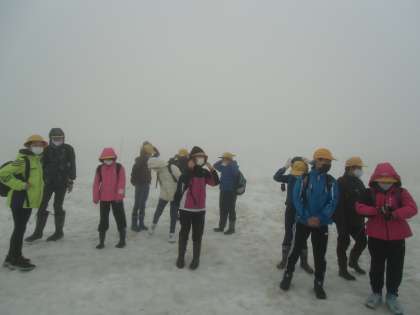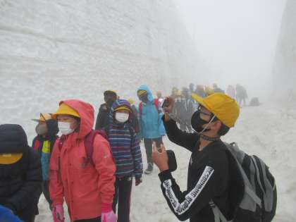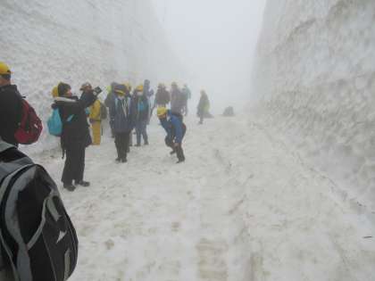 「雪の回廊」では、見渡す限り雪に囲まれました。左右には雪の壁、地面には分厚く積もった雪。目の前には霧もかかり、5月とは思えない風景が広がっていました。