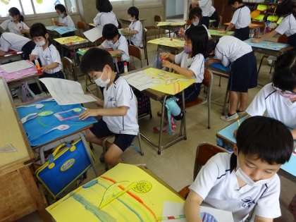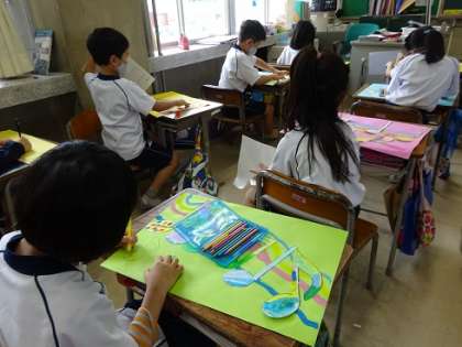 音のイメージを絵で表そう(2年生) 公開日 2021/05/20 更新日 2021/05/20 2年生 図画工作科「音のイメージを絵で表そう」では、子どもたちが思い思いの形で五線譜を描き、水彩を生かして、音符に色付けをしています。しま模様や水玉模様、それぞれに個性あふれる作品が仕上がりそうです。