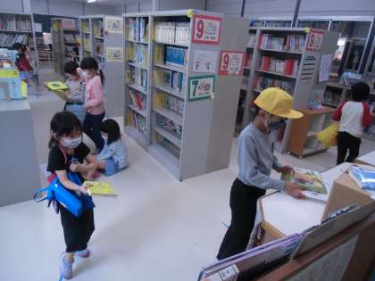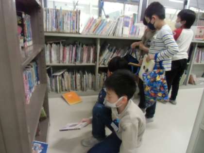 金曜日は図書室に行き、本が借りられるようにしています。今日もどんな本を読もうかじっくり考える子どもたちでした。