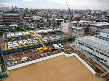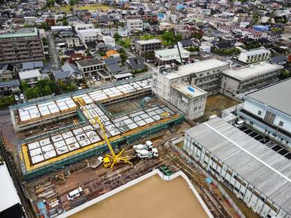 堀川小学校 「いま」・むかし 5/22ドローン コンクリート打設