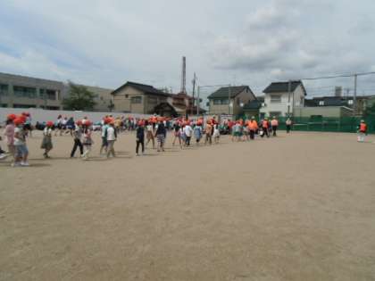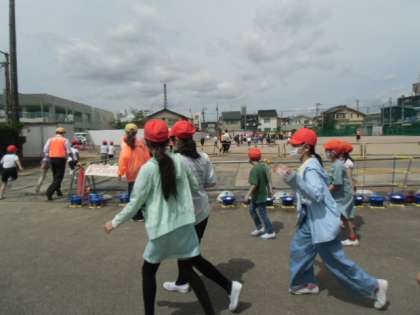 1階給食室より出火の想定でグラウンドに避難しました。