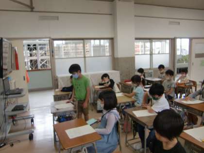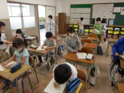 算数科の学習にて (2年生) 公開日 2021/05/26 更新日 2021/05/26 2年生 30センチメートル竹ものさしを使って教室の中にあるものの長さしらべをしました。調べようとするものの長さを予想した後に、実際に長さを調べました。活動の後の振り返りでは、嬉しそうに「調べてみると予想した長さと同じだった」。残念そうに「2ミリメートルちがいだった」「予想とは違って難しかった」などと、いろいろな思いが伝えられました。