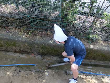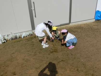 玄関や外でも活動しています。場所に合わせて、活動方法を工夫して取り組む4年生です。みんなとてもがんばっています。