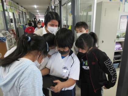 クロームブックを使い始めて、2か月ほどが経ちます。少しずつ操作に慣れてきた子どもたちです。休憩時間には、翻訳機能を使って、ALTの先生に話しかける様子も見られました。まだ、英語を十分に話すことができない子どもたちもこの機能を使うことで、会話ができる喜びを感じているようでした。