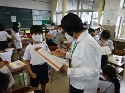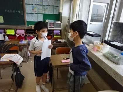 好きな漢字は(3年生) 公開日 2021/05/27 更新日 2021/05/27 3年生 外国語活動の時間には、好きな漢字を紹介し合う活動をしました。その漢字の画数を英語で伝え、画数から予想して相手に答えてもらいました。 楽しくコミュニケーションをとりながら、1〜20までの数に慣れ親しんでいました。