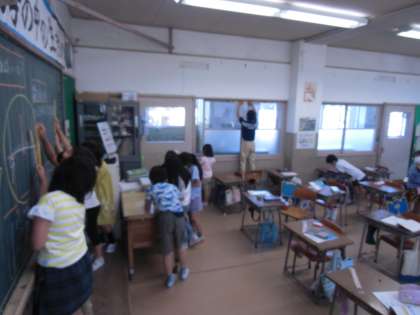 今日の算数科「長さをはかろう」の学習では「9cmと10cmの真ん中はどうすればいいの」というAさんの謎から始まりました。「mm」という単位を学習し、教室の中で竹ものさしを使い、いろいろな物の長さをはかりました。