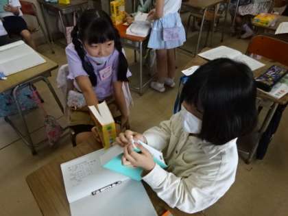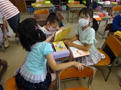 国語辞典で(3年生) 公開日 2021/06/09 更新日 2021/06/09 3年生 国語科「国語辞典を使おう」の学習で、辞書の使い方を学習した子どもたちです。今度は、言葉の意味から見出し語を考える活動をしました。 クイズ形式で問題を出し合い、考えていました。