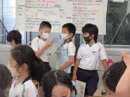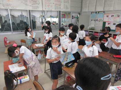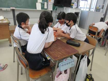 外国語活動では、曜日について学習をしています。好きな曜日を訪ねたり、カードを使ってゲームを行いながら、練習に取り組みました。