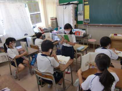 国語科での姿 (2年生) 公開日 2021/06/10 更新日 2021/06/10 2年生 「ミリーのすてきなぼうし」の単元に取り組んでいます。登場人物の気持ちを考えたり、挿絵を見て想像したりと、みんなで楽しく学習に取り組んでいます。