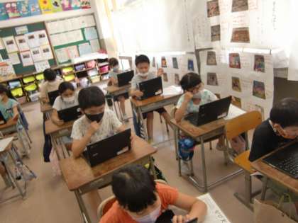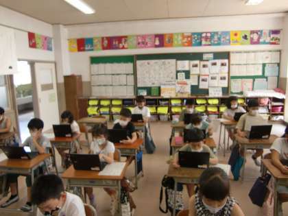 クロムブックを使って避難訓練の振り返りをしました。使い方にも慣れてきた皆さんです。
