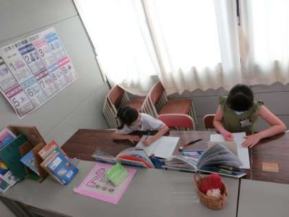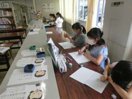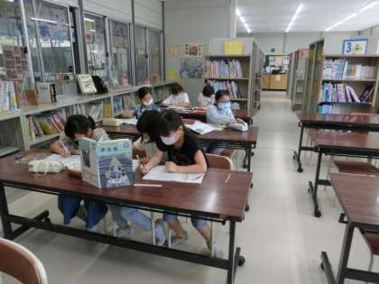 社会科で浄水場について調べています。図書室で真剣に調べる子どもたちです。